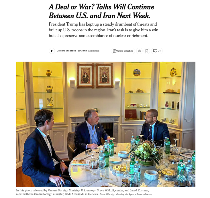 外部环境上,本轮谈判是在高密度军事部署和明确武力威胁背景下进行的,美方多次以“若不达成协议就会有严重后果”的措辞施压,而伊朗方面则保持军事警戒,这种“边谈边对峙”的状态既可能推动谈判,也放大了突发事件打断谈判的风险。