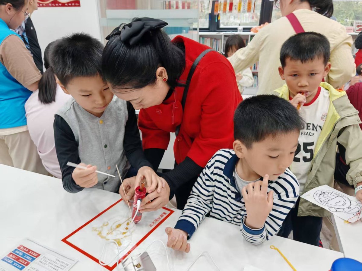 非遗糖画体验环节也备受青睐,社区邀请的非遗爱好者现场展示熬糖、拉丝、勾勒、成型等技艺,娴熟的操作引来孩子们阵阵赞叹。在工作人员和志愿者的指导下,孩子们亲手绘制飞马、花朵、灯笼等吉祥图案,近距离感受传统非遗魅力。