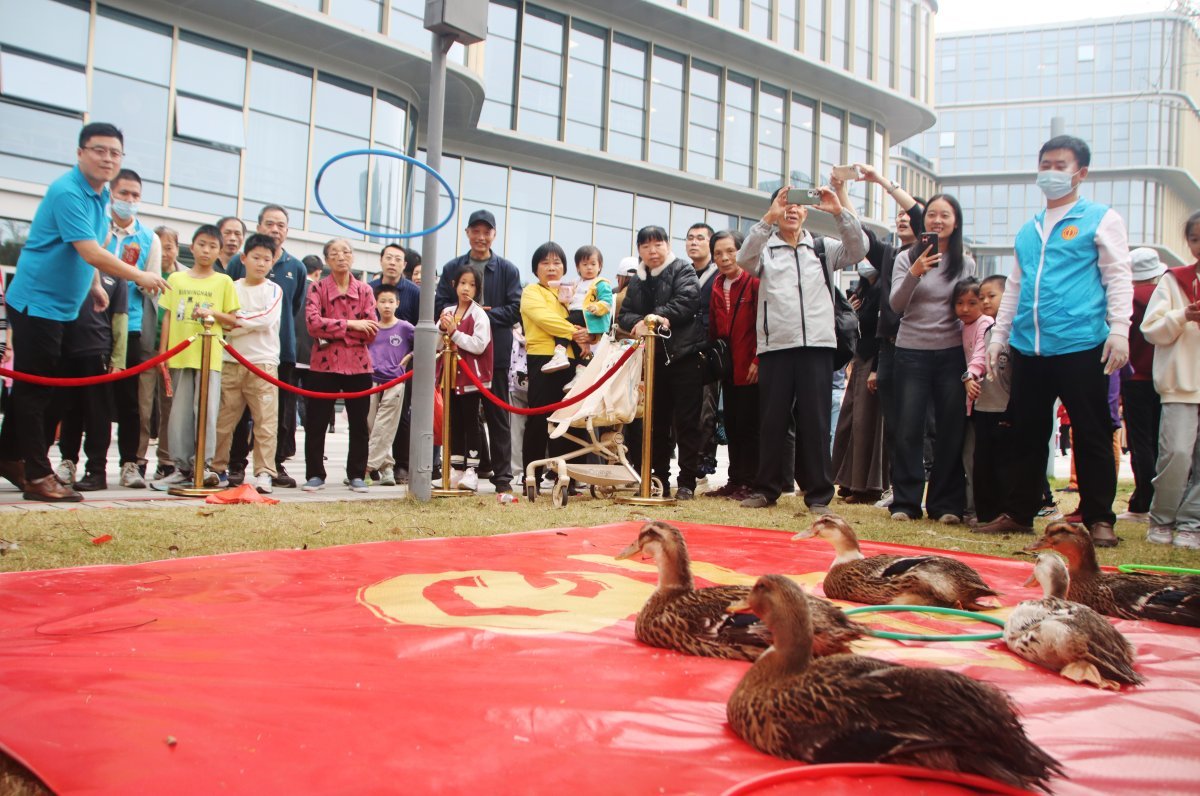 其中,“民俗游戏”区人气高涨,13项传统项目搭配12个趣味关卡,职工结伴踊跃闯关,“套圈赢麻鸭”“猜灯谜”等互动妙趣横生;“匠心手作”区职工沉浸式体验剪纸、漆扇绘制等17项非遗互动项目;“良缘巧遇”区单身青年职工通过趣味互动游戏拉近距离、增进情谊;“风采展示”舞台上,职工自编自演的醒狮、武术、变脸等节目轮番上演,赢得现场阵阵掌声。