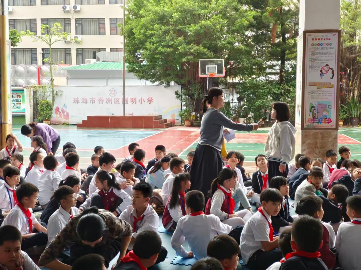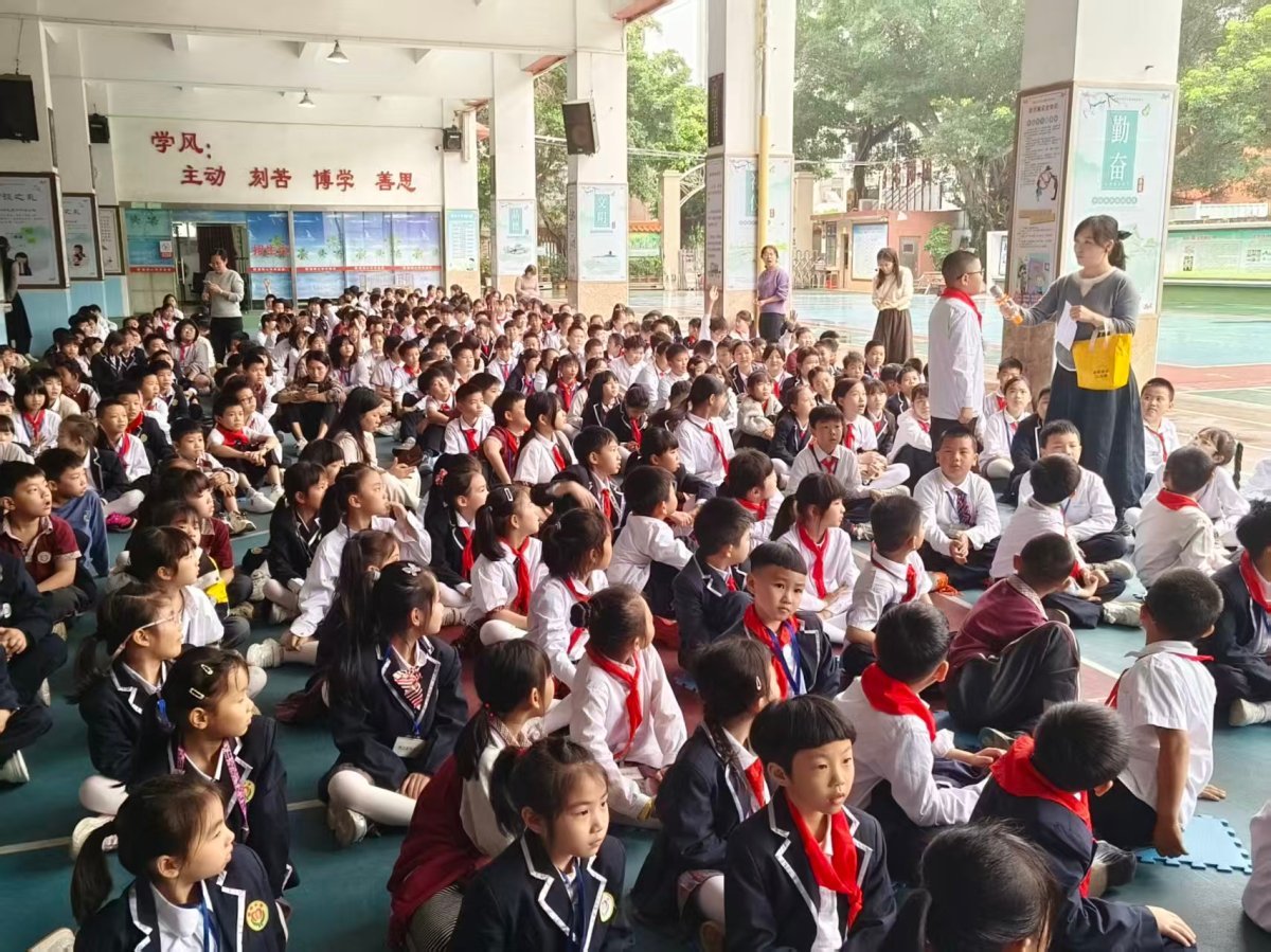 “大骨头是厨余垃圾吗?”“用过的纸巾属于哪一类?”“喝完的奶茶杯该怎么处理?”……宣讲员抛出的一个个生活中常见的分类难题,化身成判断题、情景模拟题、多选题等趣味关卡。话音刚落,台下便齐刷刷地举起一片小手,同学们争先恐后,对答如流,俨然一个个“环保小卫士”。答对问题的同学,喜提一份精美的小礼品,更在欢声笑语中,将那些容易混淆的分类知识点牢牢印在了心里。