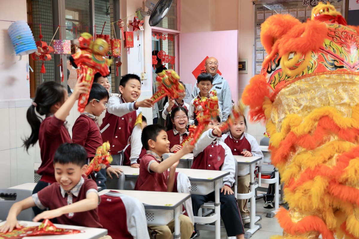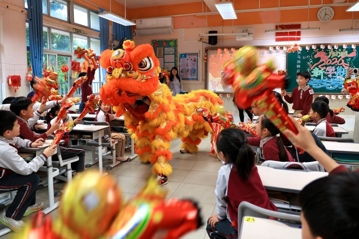 锣鼓声声,醒狮欢腾。3月3日,正月十五元宵节,珠海市香洲区实验学校内热闹非凡——一头色彩鲜艳的醒狮摇头摆尾地“闯”进教室,引得孩子们欢呼雀跃,纷纷伸手触摸狮头,祈求新学期好运连连。