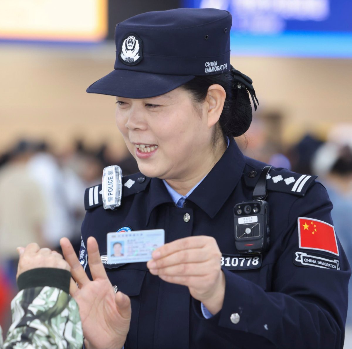 作为队里的“老专家”,她毫无保留地将工作经验传授给年轻民警,还常常深入社区开展志愿服务,照料独居老人。2025年春节口岸客流高峰,她扭伤脚踝仍坚持带伤值守。