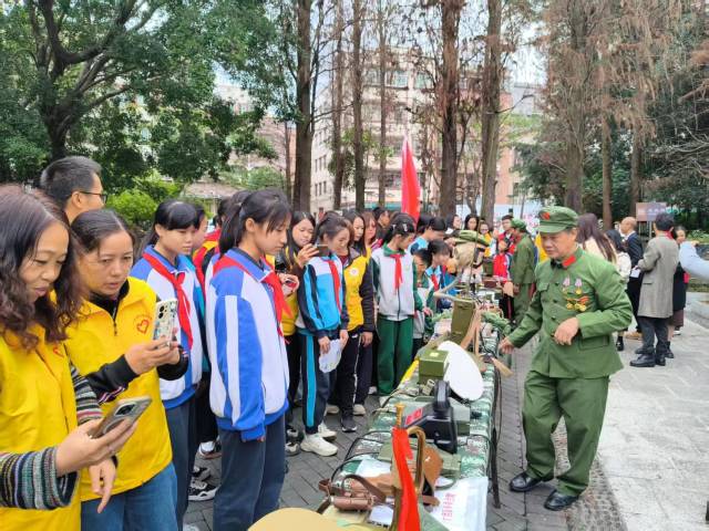 在三角镇沙栏中学,参战老兵、二等功臣吴应辉身着旧式军装走上讲台。这位战场上的“听风者”讲述了自己在枪林弹雨中坚守通信岗位,身中三枪仍坚持战斗的经历。退役后,右手伤残的他用左手苦练成为“算盘专家”。他勉励同学们:“现在的生活很幸福,但你们会遇到另一种‘战场’——学习的难题、成长的烦恼,希望你们保持不服输的劲儿。”