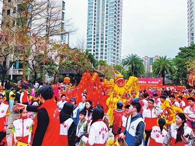 当日8时许,华发新城已汇成一片欢腾的海洋。社区志愿者组成的民俗表演队、来自五湖四海的居民欢聚于此,脸上洋溢着同样的期待。