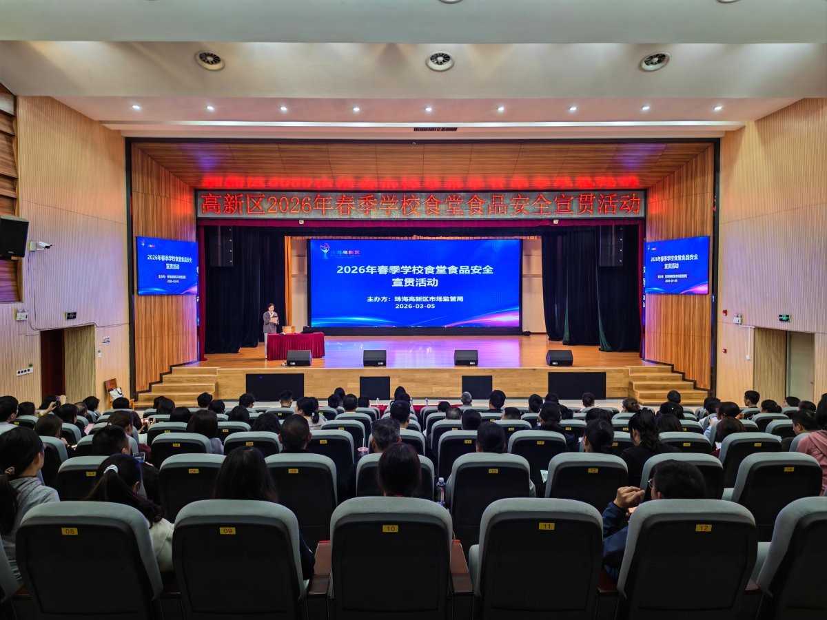 为进一步加强校园食品安全管理,压实各方主体责任,切实保障广大师生“舌尖上的安全”,3月5日下午,珠海高新区市场监管局组织召开2026年春季学校食堂食品安全宣贯活动。高新区市场监管局相关负责人、辖区各学校(含托幼机构)校(园)长、分管食堂领导、食堂管理人员、校园食堂服务餐饮管理公司负责人及食品安全总监、安全员等共计132人参加了此次培训,为新学期校园食品安全“充电赋能”。