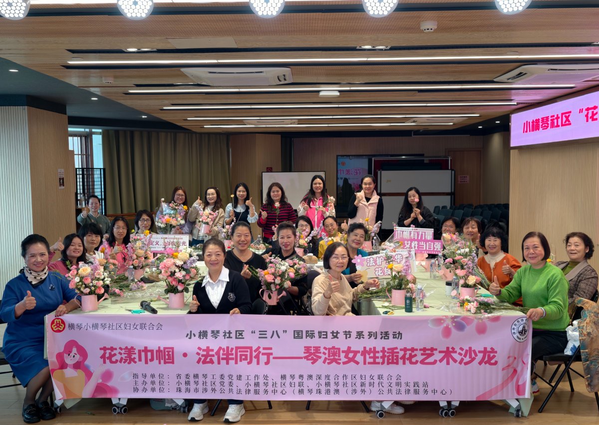 为迎接第116个“三八”国际妇女节,彰显对女性的尊重与关爱,深化琴澳融合发展背景下的社区联结,连日来,小横琴社区妇联联动社区妇女之家、横琴澳门新街坊家庭社区服务中心两大阵地,以“琴澳巾帼同心・芳华共谱新篇”为主题开展三八妇女节系列活动,为社区本地妇女及常住澳门居民女性送上暖心节日祝福。本次活动由省委横琴工委党建工作处、横琴粤澳深度合作区妇女联合会指导,共计近百名琴澳女性参与。