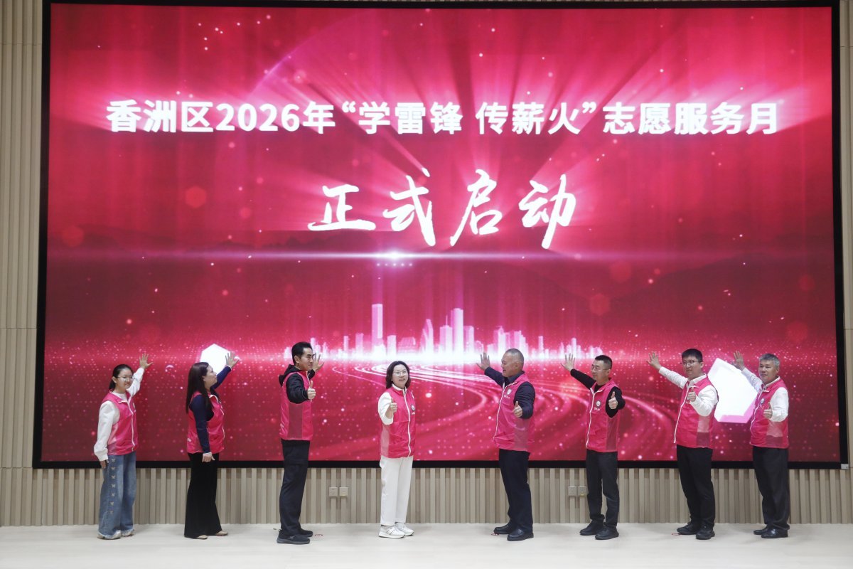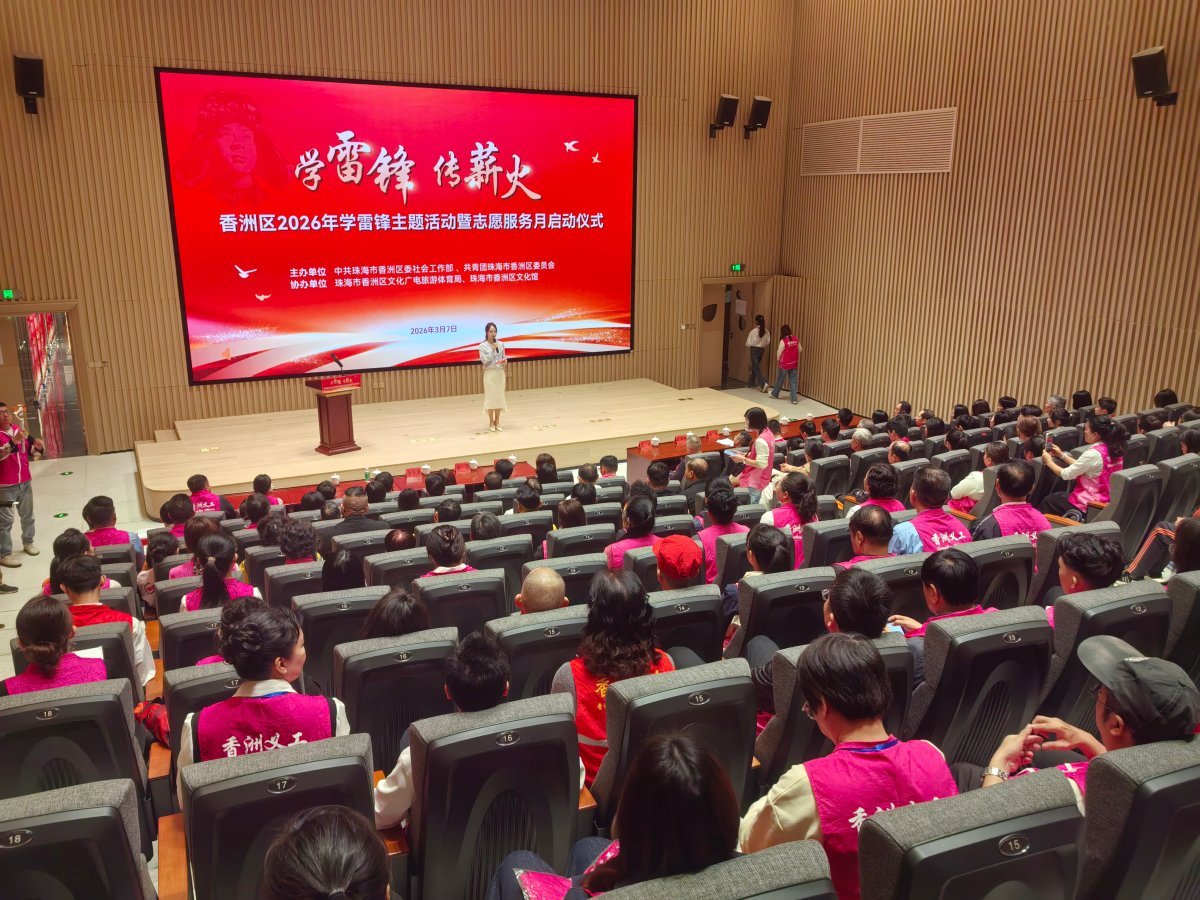 3月7日上午,由香洲区委社会工作部、团区委联合主办的香洲区2026年“学雷锋 传薪火”主题活动暨志愿服务月启动仪式,在香山文化艺术中心香艺报告厅举行。启动仪式以青年志愿者演绎的手语舞《感恩的心》启幕,来自辖区高校及中小学的志愿者代表,用真挚的表演传递志愿服务温情。