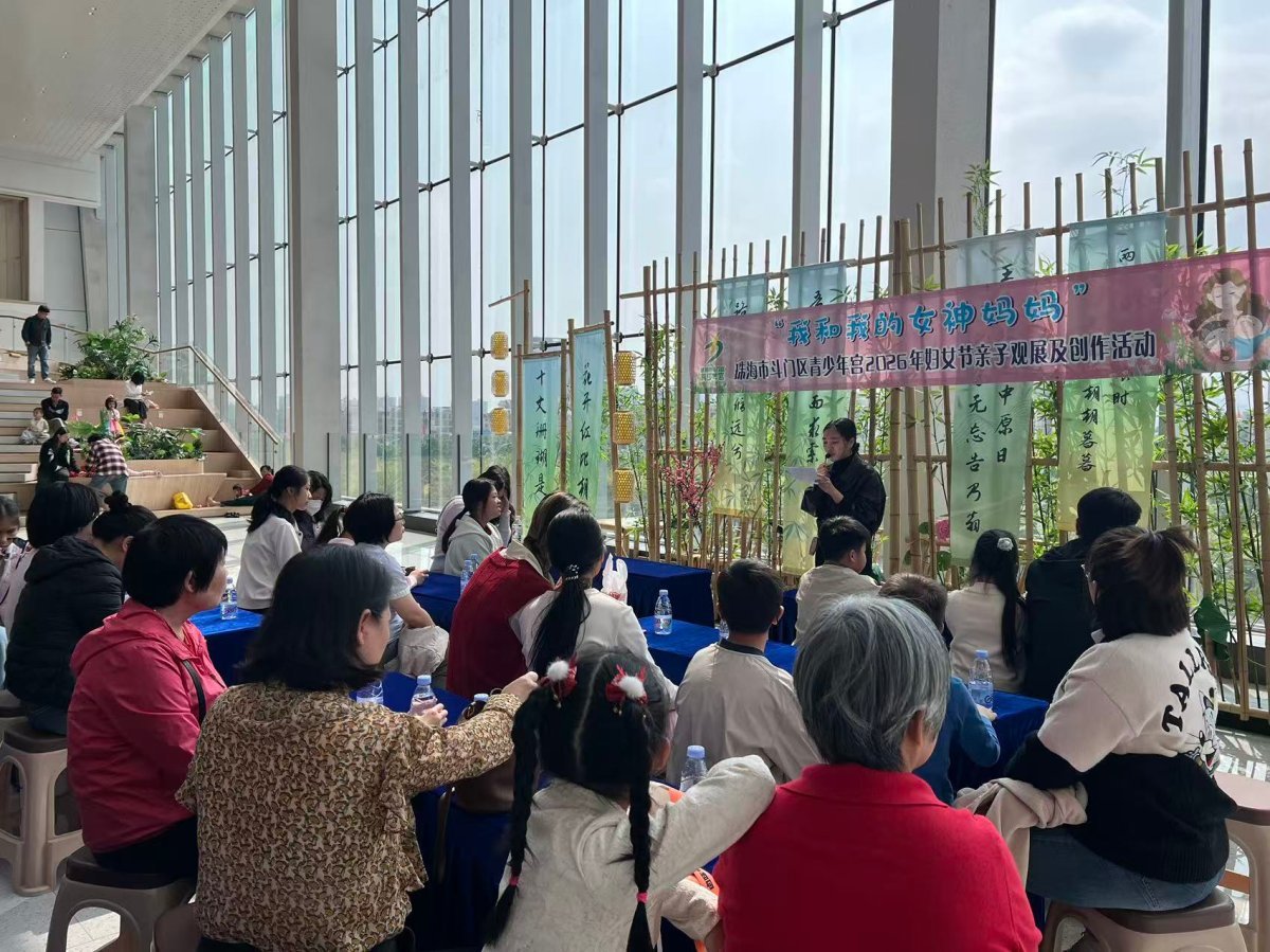 3月7日下午,斗门区青少年宫在斗门招商花园城开展以“我和我的女神妈妈”为主题的“三八”妇女节亲子观展及创作活动,在“画着画着,就获奖了”作品展获奖的20组学员家庭温馨相聚,以艺术为媒,用创意传情,在亲子协作与暖心互动中致敬母爱,共度一段充满温情的美好时光。