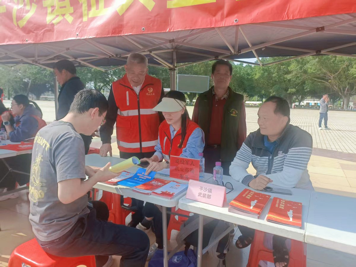 结合退役军人服务保障核心职 责,此次志愿服务还融入政策宣传重点,实现“志愿服务+政策宣讲”双向发力。平沙镇退役军人服务站联合镇武装部,在招聘会现场设立专属服务点位,退役军人志愿者们化身“政策宣传员”,依托“老班长”工作室的经验优势,面对面为适龄青年、退役军人及家属解读征兵政策、退役军人就业扶持政策等相关细则,精准回应群众关于就业补贴、技能培训、岗位适配等各类咨询,让求职群众在对接岗位的同时,便捷获取政策红利,切实打通政策宣传“最后一公里”。
