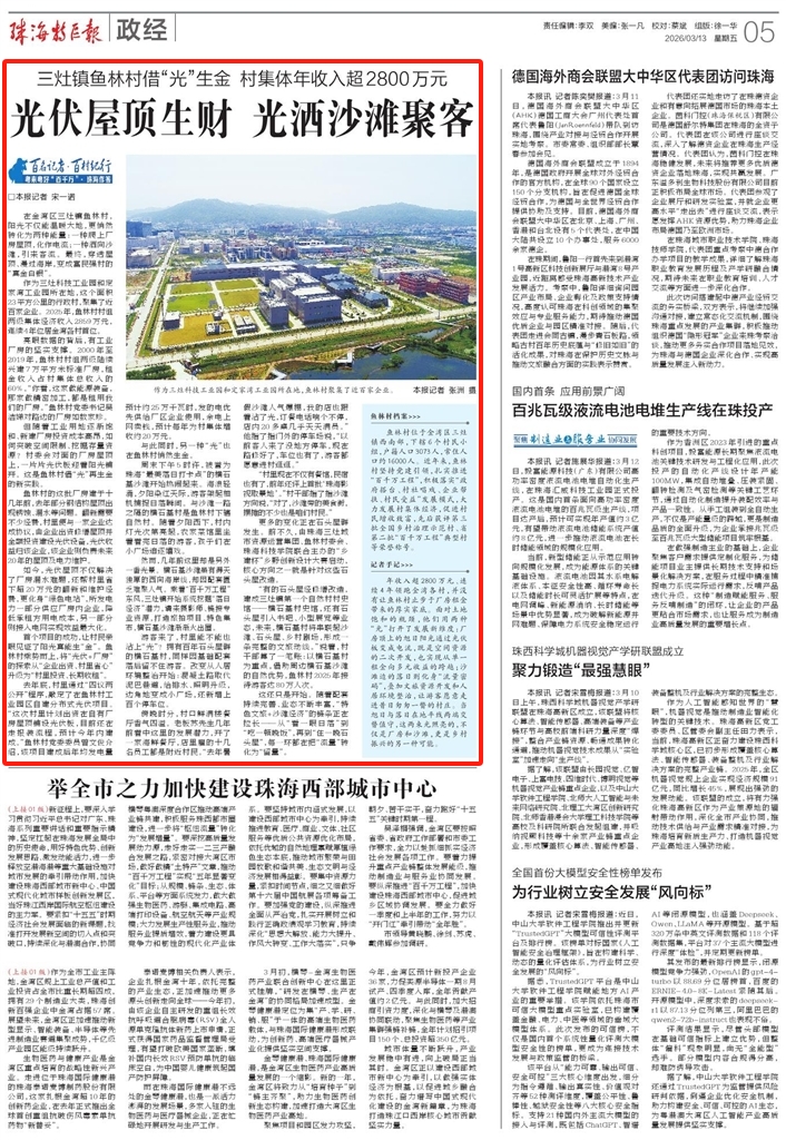 阳光能做什么?在珠海市金湾区三灶镇鱼林村,阳光不仅能温暖大地,更悄然转化为两种能量:一种爬上厂房屋顶,化作电流;一种洒向沙滩,引来客流。最终,穿透屋顶、漫过海岸,变成了富民强村的真金白银。