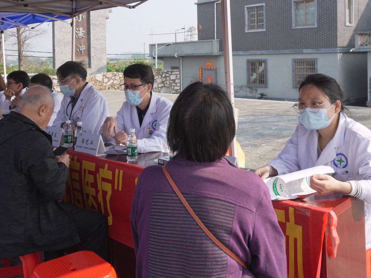 活动首站设在珠海地区第一个党支部的诞生地——斗门镇小濠冲村。中山五院肾内科、心血管科、内分泌科、儿科等多学科专家团队一早便来到这里,搭建起义诊服务区,闻讯而来的村民络绎不绝。