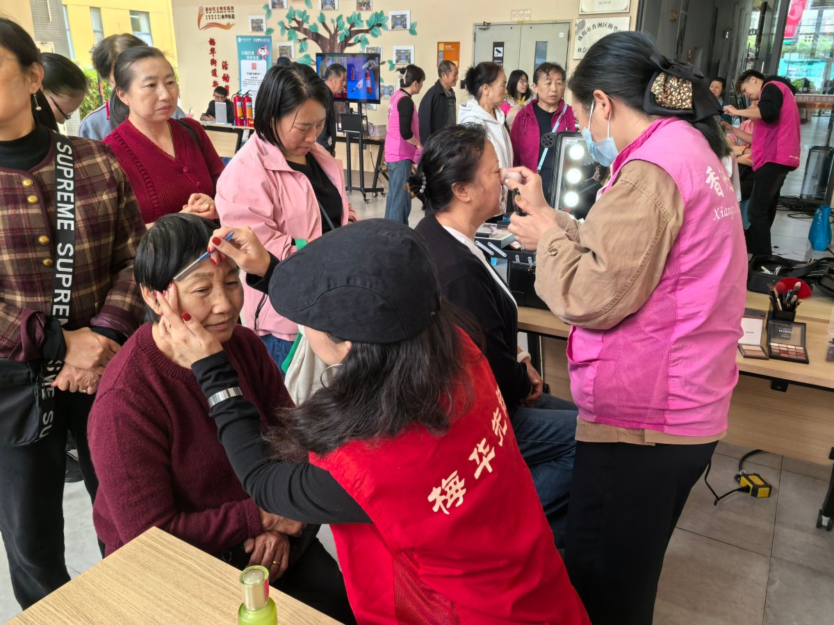 聚焦便民亮点,贴心服务温暖民心。作为活动核心亮点之一的美妆区,整合义剪、公益化妆、春日拍摄三大服务,区别于常规拍照留念的简单形式,打造“公益化妆+公益摄影”一站式特色体验。专业化妆老师不仅为居民免费打造精致妆容,还现场手把手教授实用化妆技巧;随后搭配春日主题公益摄影,定格居民美好瞬间,让便民服务更有温度、更具质感。