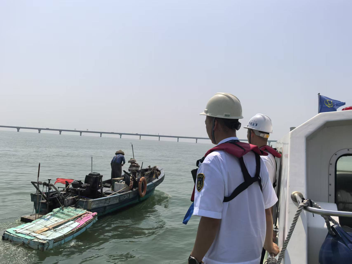 另一方面,通过强化联合执法,与珠海市海洋综合执法支队开展联合行动,重点检查涉客船舶航道通航环境和通航秩序,及时引导商渔船“各行其道”,切实防范商渔船碰撞事故发生。同时,强化水域监管,通过智慧海事平台、CCTV视频监控等信息化手段,加强对港珠澳大桥桥梁航道和重点涉客船舶的动态监管,加强商渔船舶点验、叫应和“一对一”提醒,实时掌握船舶航行动态。