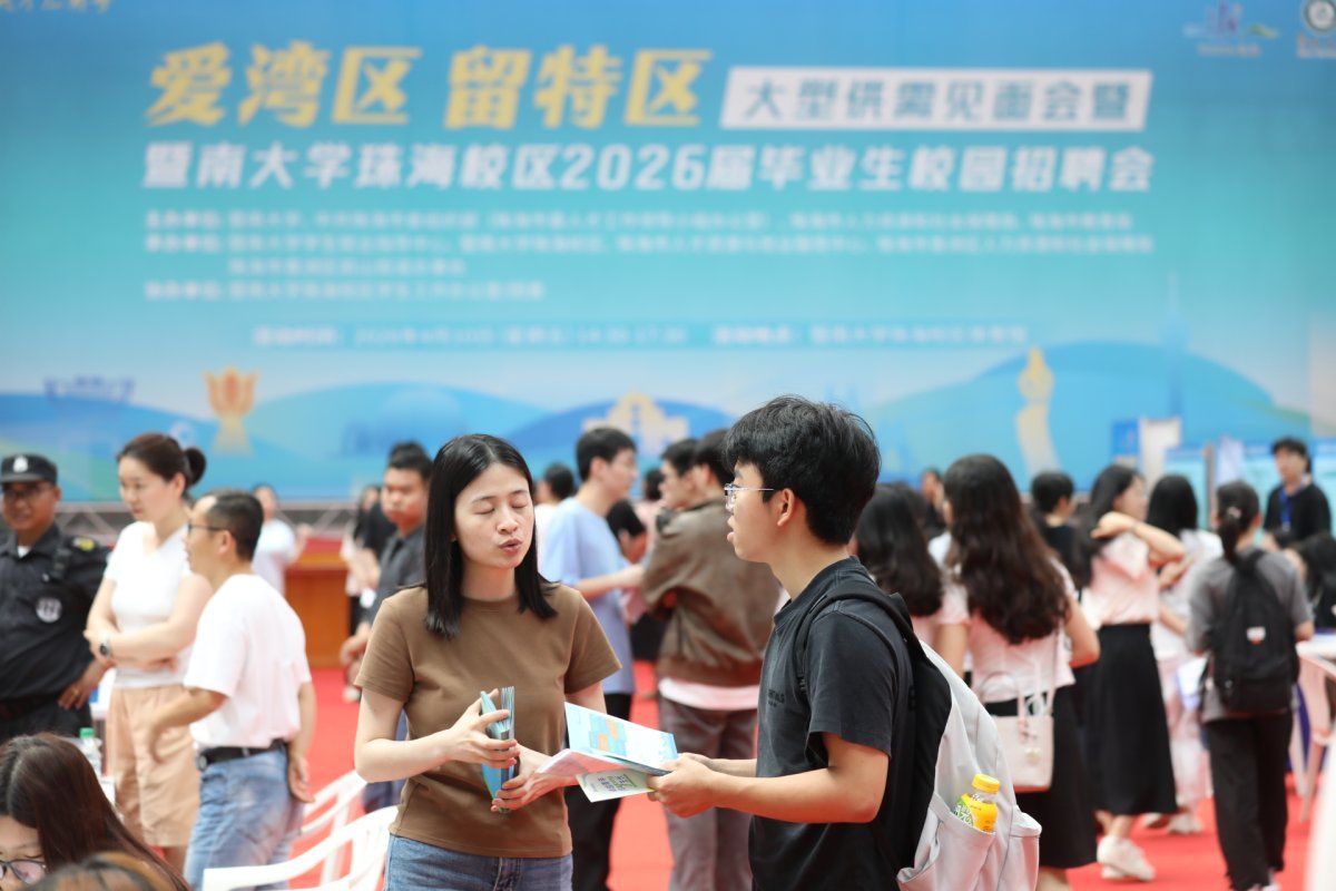 尤为引人注目的是港澳台侨企业招聘专区。为充分凸显侨校优势,满足暨南大学外招生学子的求职需求,澳门无境科技有限公司、广东万领人工智能科技有限公司、普强时代(珠海横琴)信息技术有限公司等港澳企业在此专区设岗纳才,提供专属岗位对接与政策支持服务。“珠海针对港澳青年的就业创业支持政策非常友好,作为一家落地珠海发展的港资公司,公司今年专门扩招了技术服务岗,希望吸引更多暨大的港澳学子加入。”广东万领人工智能科技有限公司的招聘负责人表示。