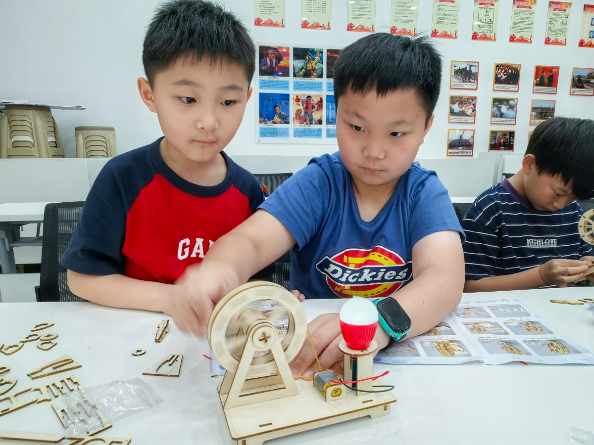 活动一开始,暨南大学志愿者带着孩子们“穿越”到200多年前,“认识”英国科学家法拉第。法拉第发现磁能生电的故事,让孩子们听得入迷。在志愿者手把手的指导下,孩子们与家长分工协作,制作出迷你发电机。当小灯泡随摇柄转动而亮起时,惊叹声和掌声此起彼伏,科学的种子在孩子们心中悄悄萌芽。